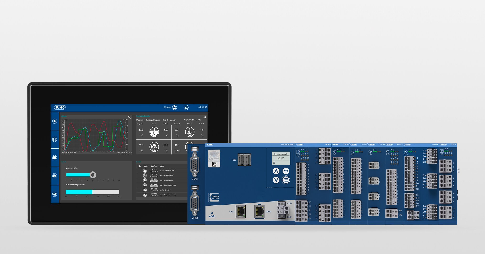 Eine SPS (Speicherprogrammierbare Steuerung) ist eine Art kompakter Industriecomputer, der Daten über Eingänge erfasst und über Ausgänge Steuerbefehle ausgibt. Das Gerät trifft Entscheidungen auf Basis der programmierten Logikfunktionen und steuert damit die Systemabläufe, die im SPS‑Programm definiert sind. Speicherprogrammierbare Steuerungen werden in allen Branchen eingesetzt, um kritische industrielle Prozesse zu automatisieren und den Betrieb von Maschinen zuverlässig zu steuern.