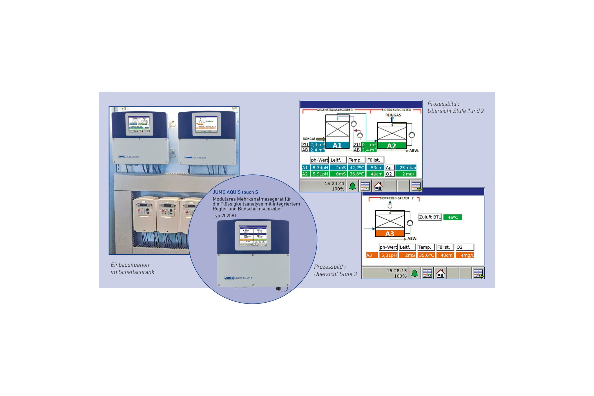 Für das sichere und effektive Erreichen der gesetzlich vorgeschriebenen Schadstoff-Grenzwerte setzt die terra-care Umwelttechnik GmbH bevorzugt mehrstufige Systeme, mit Absorbentionsmittel und biologischen Reinigungsstufen ein. Hierbei wird der Masseübergang von löslichen Rohgasbestandteilen und dem Sorbens zum einen und die biologische Abbaubarkeit vieler Abluftbestandteile zum anderen genutzt. Durch die hohen Abscheideraten der Wäschersysteme können die in der TA-Luft des Bundesministeriums für Umwelt, Naturschutz und Reaktorsicherheit beziehungsweise der BImSchV (Bundes-Immisionsschutzverordnung) festgelegten Emissionsgrenzwerte sicher erreicht und gewährleistet werden. Die sichere Funktionalität der Anlage ist in hohem Maße von den steuerbaren Betriebsparametern der Einbauteile und der Wasserqualität abhängig. Daher wird das gesamte System ausschließlich durch Mess- und Regeltechniktechnik-Komponenten überwacht und gesteuert.