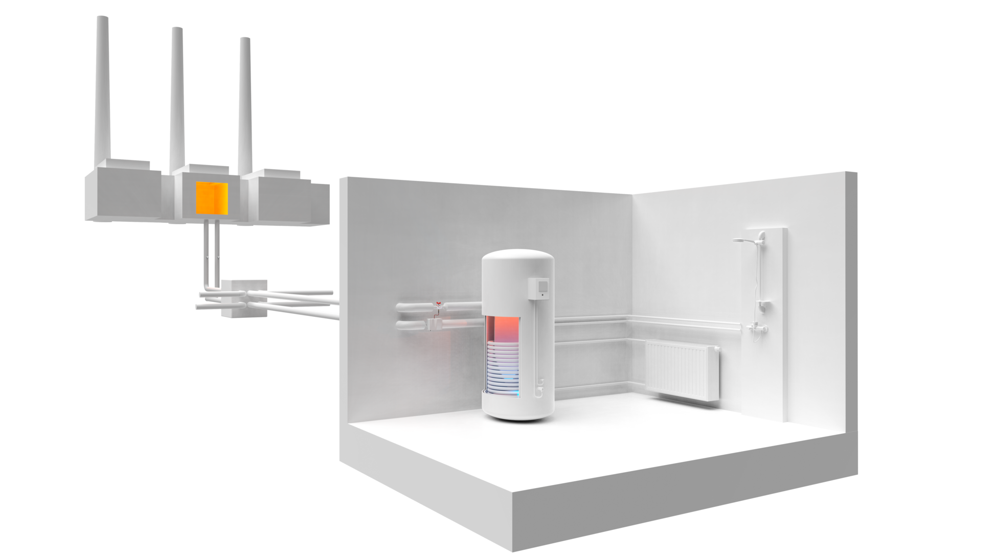 Le chauffage urbain est de plus en plus utilisé dans les agglomérations pour fournir de la chaleur et de l’eau aux bâtiments. La chaleur provient directement du producteur ou d’un point de collecte et est distribuée directement aux stations de chauffage urbain. Pour mesurer la consommation d’énergie, on utilise ici des paires de capteurs de température et des accessoires coordonnés.