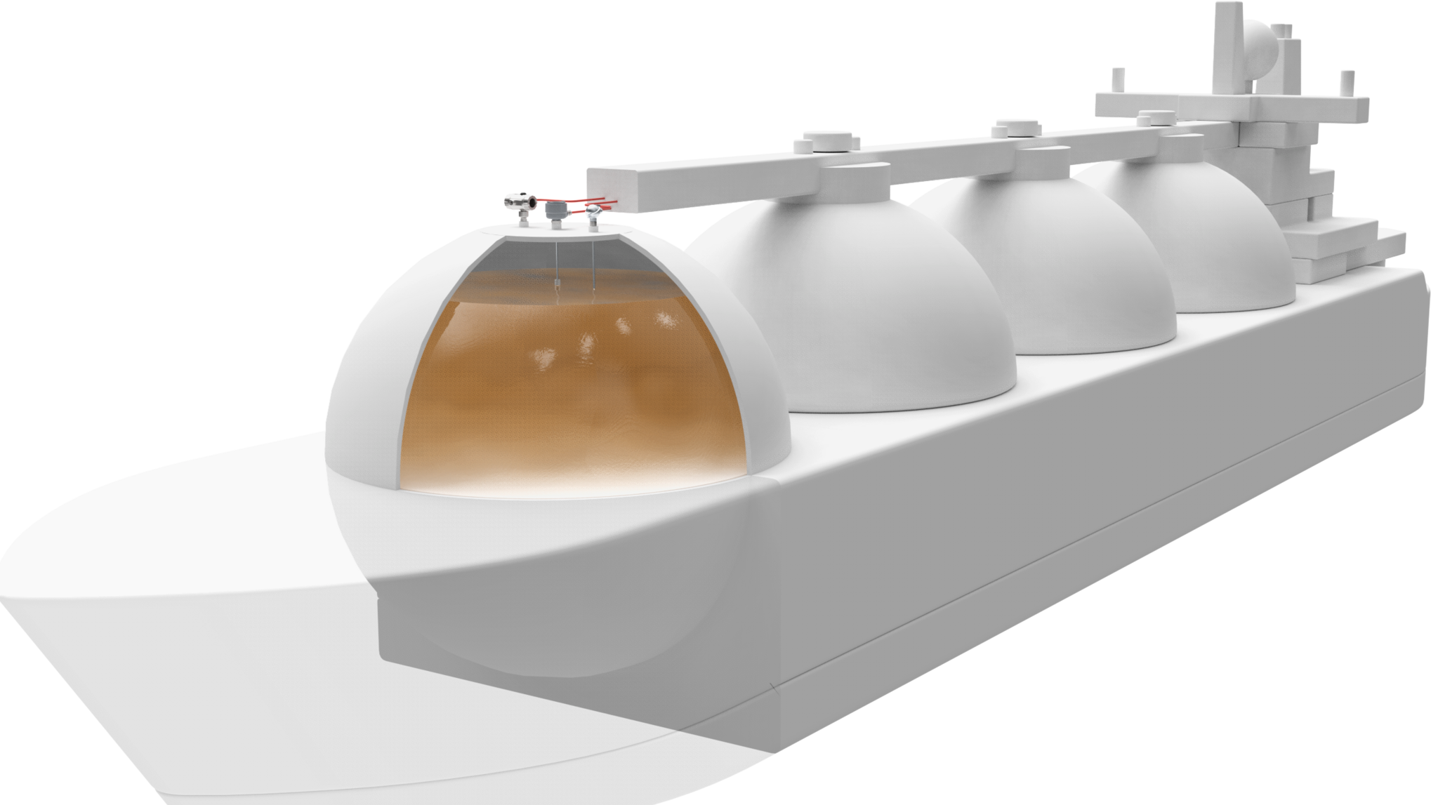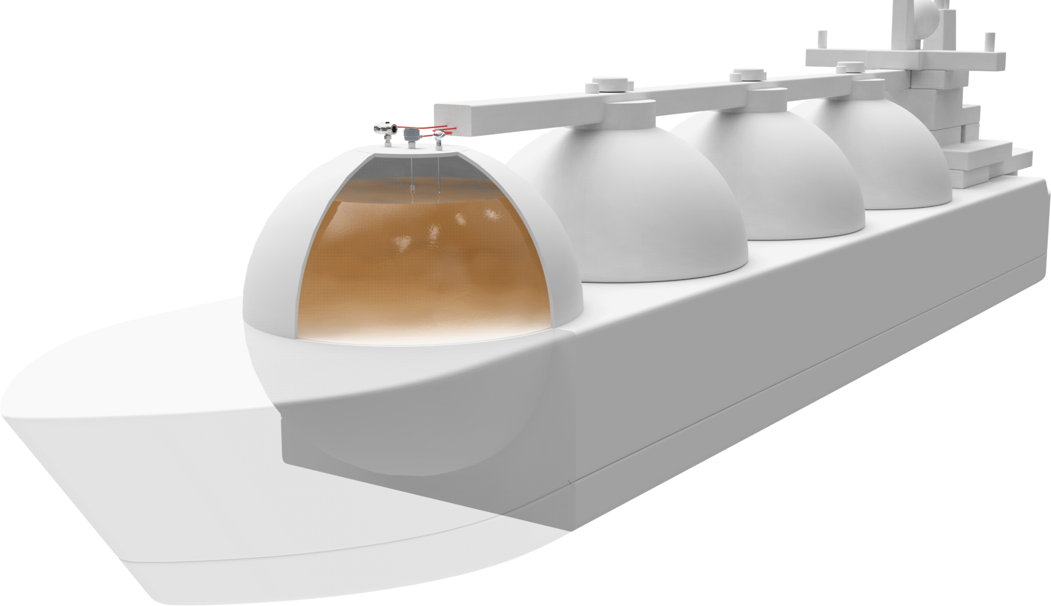 Pour le transport de pétrole ou de gaz liquéfié, des réservoirs sphériques sont généralement utilisés, qui dépassent à mi-hauteur du pont du pétrolier. En raison de la pression et de la température élevées qui affectent les matériaux, les réservoirs sont en acier inoxydable spécial et isolés de la coque. La technique de mesure et de régulation utilisée doit être approuvée à la fois pour la navigation et les installations présentant des risques d'explosion.