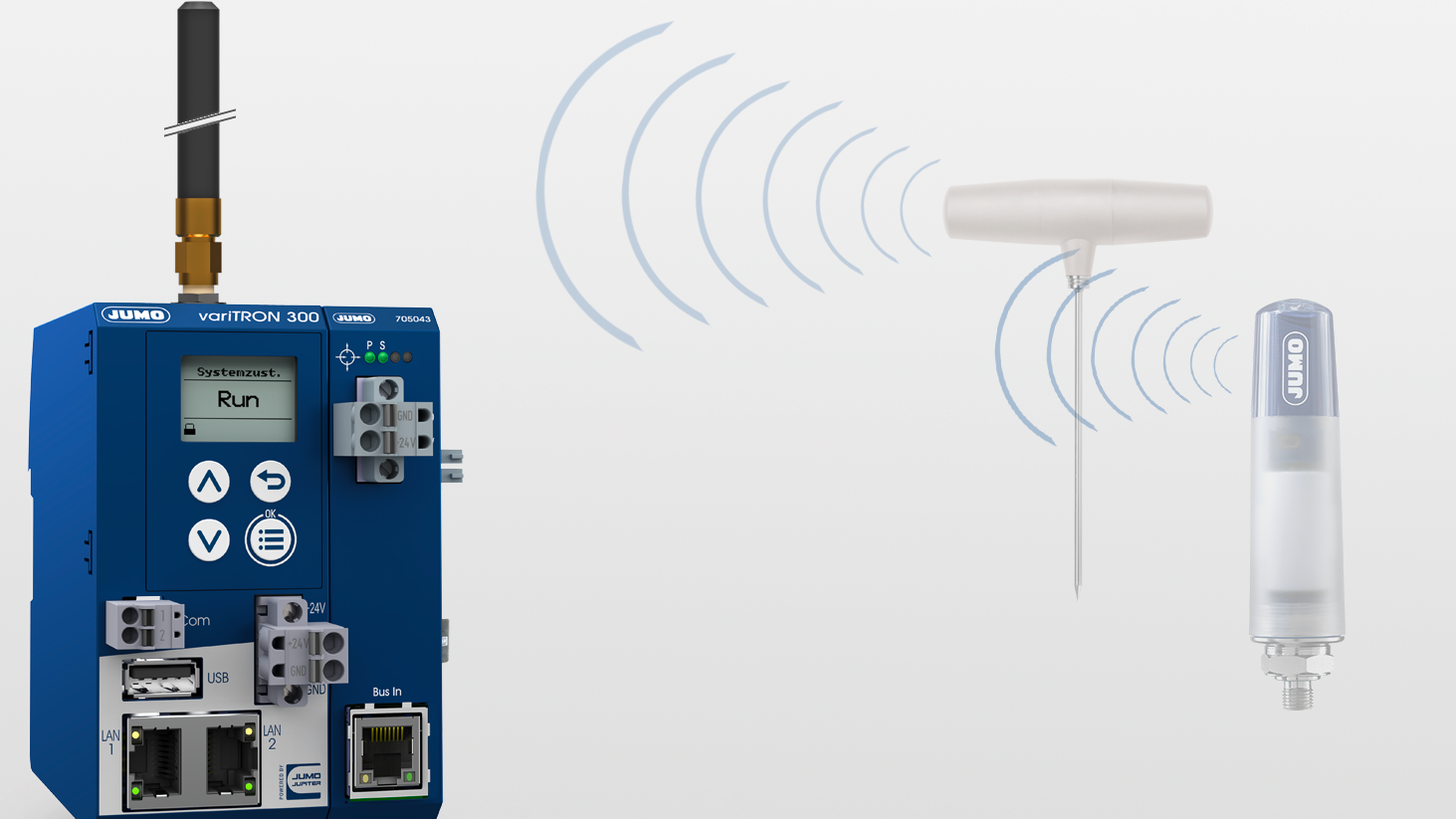 JUMO variTRON 300 avec capteur de température sans fil et convertisseur de pression