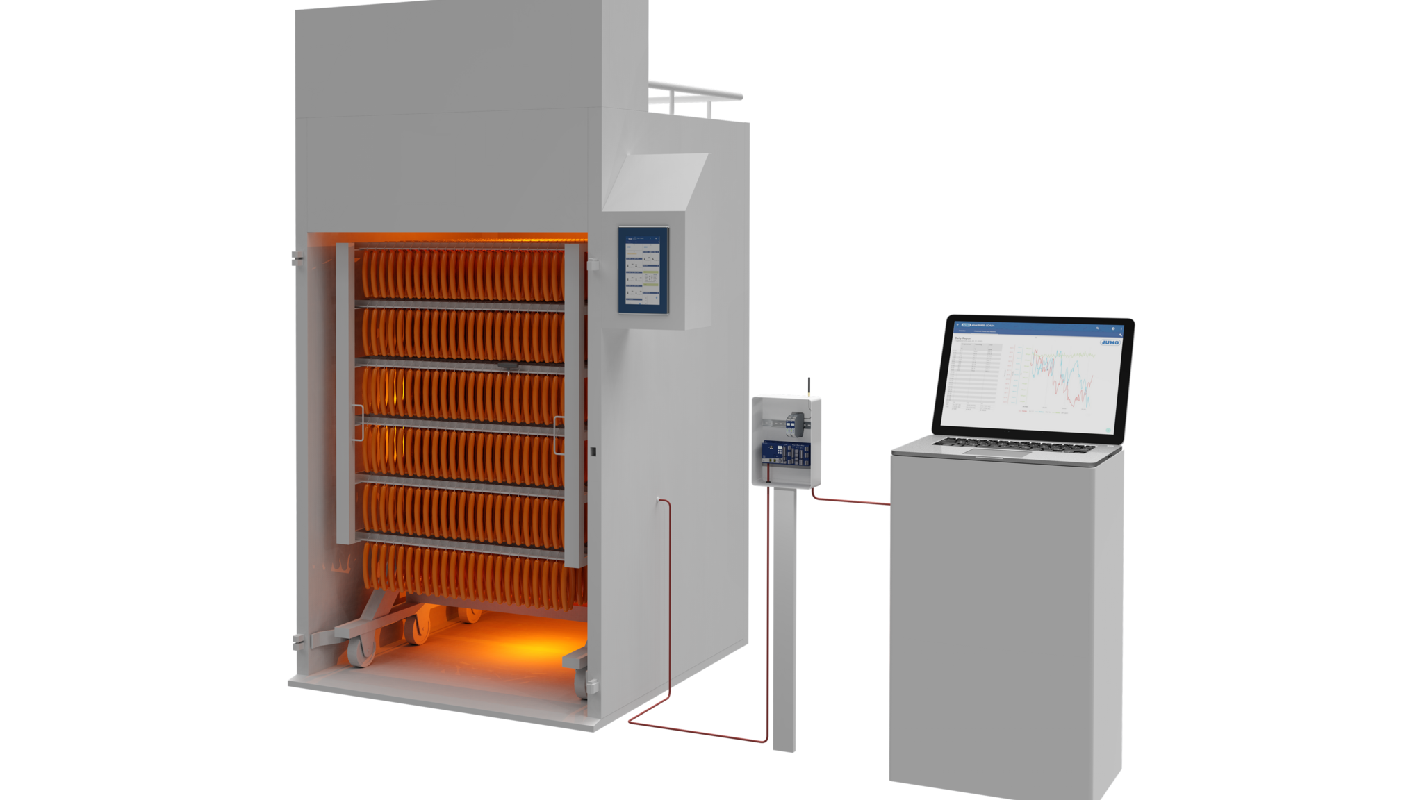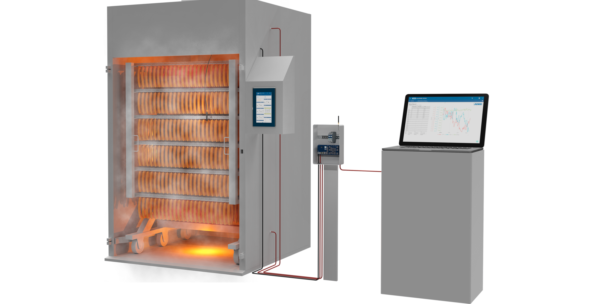 Kom meer te weten over procesgeoriënteerde meet- en automatiseringstechnologie voor jouw slagerij! Aan de hand van gedetailleerde illustraties en beschrijvingen laten wij zien hoe een efficiënte systeemoplossing in koel-, kook- en rookkamers eruit zou kunnen zien en welke voordelen eraan verbonden zijn.