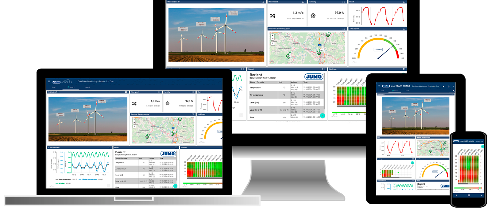 Die IoT-Software von JUMO bietet intuitive und browserbasierte Tools zur umfassenden Visualisierung, Auswertung und Archivierung von Prozessdaten. Sie ermöglicht einen weltweiten Zugriff auf Ihre Messdaten und sorgt durch individuelle Dashboards für einen zielgerichteten und schnellen Überblick. Darüber hinaus werden Produktions- und Arbeitsprozesse durch wertvolle Überwachungs-, Alarm- und Planungsfunktionen unterstützt. Jetzt IoT-Software anfragen oder beraten lassen!