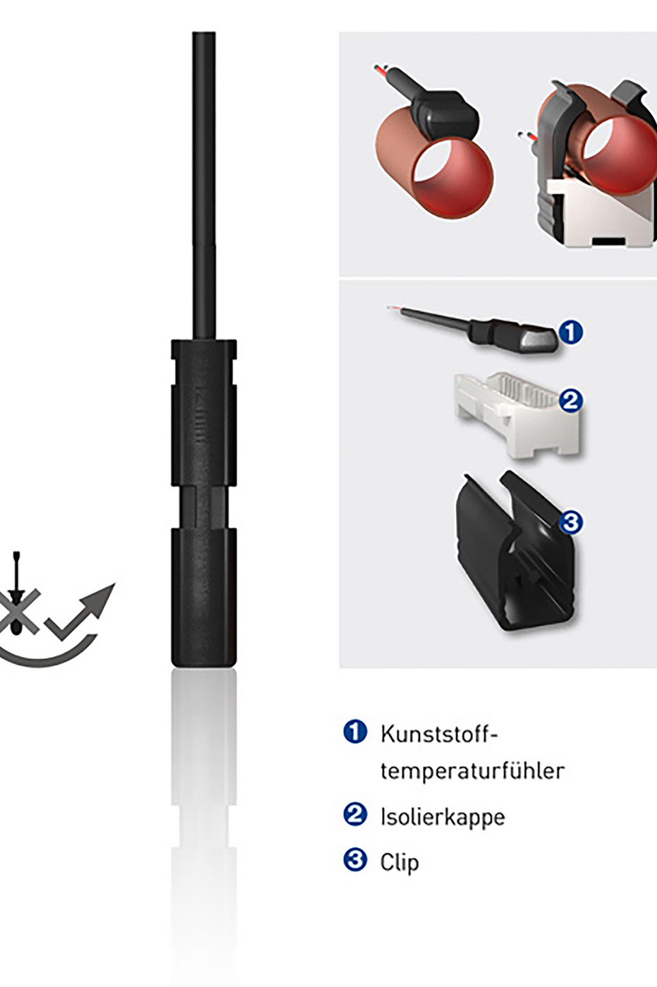 In pijpleidingen is het niet altijd mogelijk om de temperatuur in de leiding te meten, in het bijzonder in pijpleidingen met een kleine diameter. Daarom is het raadzaam om de temperatuur te bepalen met een buiscontactsensor om stroomveranderingen te voorkomen. JUMO plastoSENS T-temperatuursensoren bieden een technische oplossing voor deze toepassing. Vergeleken met conventionele op een buis gemonteerde sensoren, is de kunststoftemperatuursensor, die is geoptimaliseerd voor installatie, 100% aangepast aan de diameter van de buis. Met de meegeleverde accessoires in de vorm van een isolatiekap en een clip kan de temperatuursensor zonder gereedschap op een buis worden bevestigd. In vergelijking met de conventionele slangklem levert dit een tijdsbesparing op van 70%. Bovendien biedt de isolatiekap bescherming tegen hitte en koude invloeden, die een negatief effect hebben op het meetresultaat.<br/> De compacte oplossing kan zowel in het normale als in het Ex-bereik ingezet worden.