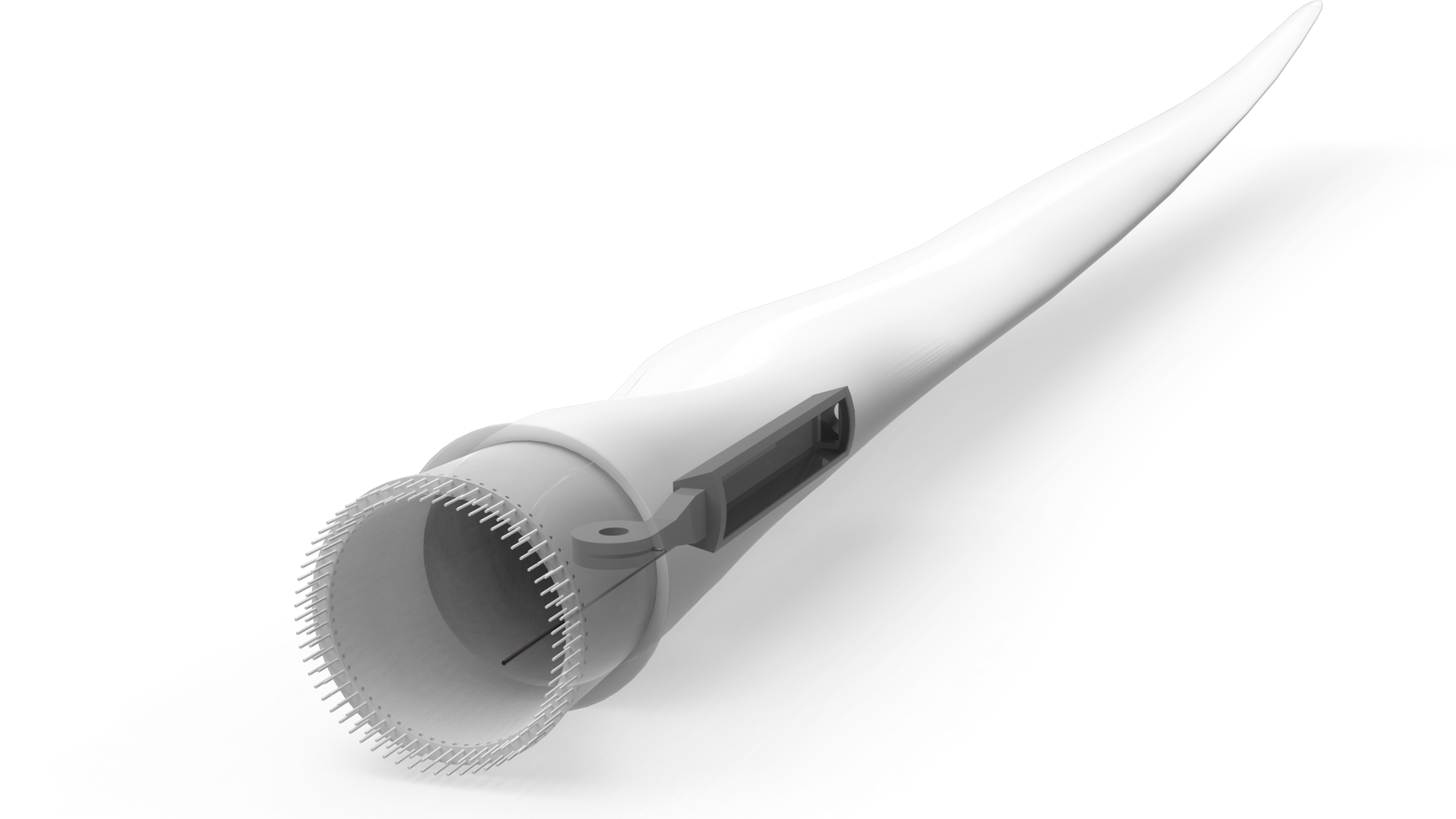 Une pale de rotor est constituée d'un stratifié de fibres de carbone /de fibres de verre en résine époxy, fabriqué par infusion sous vide. Les matelas de tissu disposés dans le moule sont saturés de résine sous vide et chauffés de manière contrôlée. En raison de la taille des pales de rotor, de nombreuses boucles de contrôle de la température sont nécessaires pour assurer un durcissement uniforme.