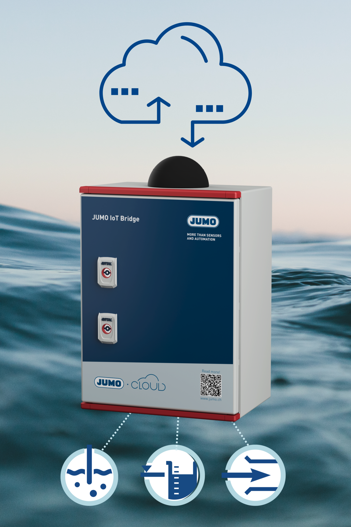 Die Messdaten werden über das integrierte LTE-Gateway direkt in die JUMO Cloud oder auf Wunsch in eine kundenspezifische Cloud übertragen. Ein integriertes GPS-Modul liefert zusätzlich den exakten Standort, was den mobilen Einsatz besonders komfortabel macht.