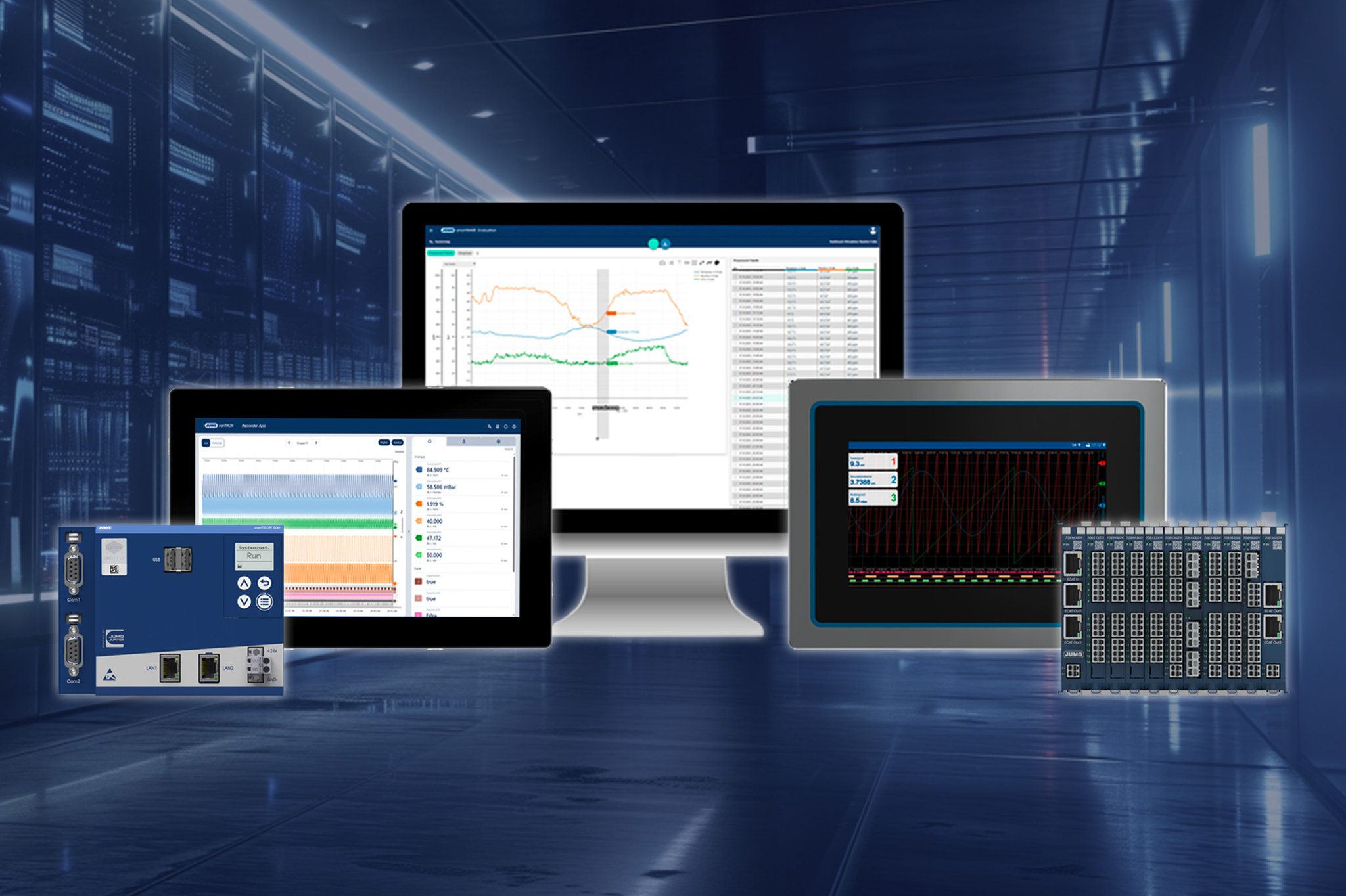 Die Aufzeichnung, Auswertung und Archivierung von Prozessdaten kann mit JUMO so einfach sein. Schließlich bieten wir Ihnen mit dem JUMO variTRON 500/500 touch und der JUMO smartWARE Evaluation ein Automatisierungssystem mit integrierter Schreiberfunktion sowie eine browserbasierte Software zur Archivierung und Visualisierung der registrierten Prozessdaten. Auf diese Weise wird das Tagesgeschäft vereinfacht, eine sichere Datenspeicherung gewährleistet und Papierkosten werden eingespart.