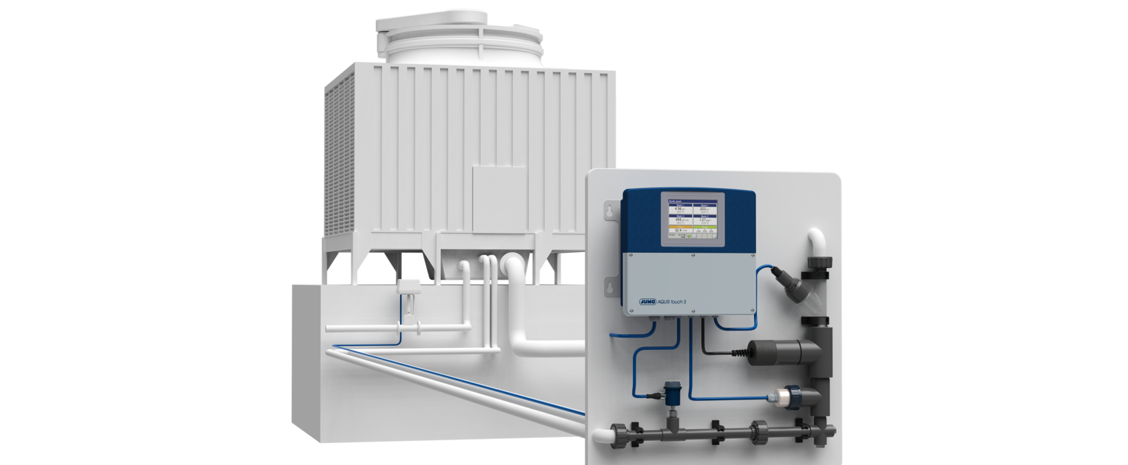 在冷却塔中,技术过程中产生的多余热量通过水的蒸发来消散。为了抵消蒸发过程中水的浓缩,并确保冷却水的卫生,JUMO可以提供相应的测量和控制技术。通过监测电导率、浊度和pH值等测量指标,冷却水的质量得到保证。