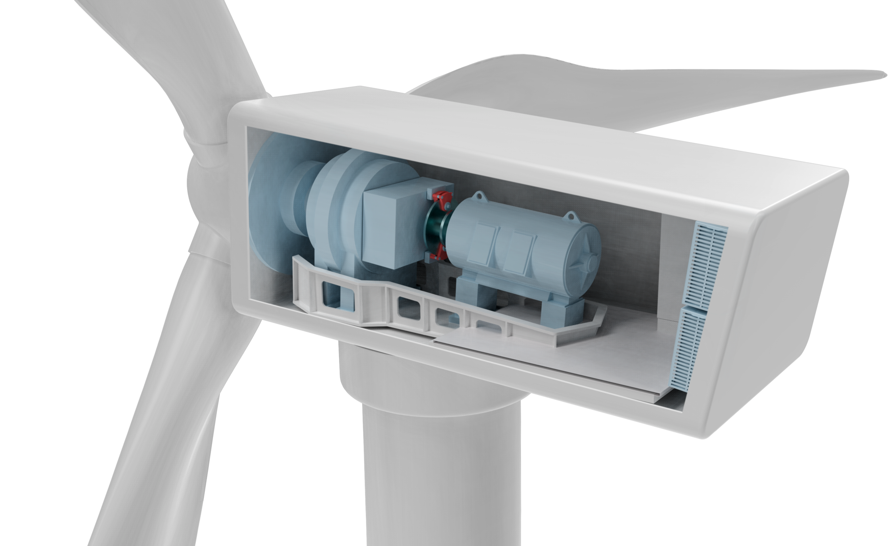 The climate control of a wind turbine nacelle ensures optimal operating conditions for sensitive technical components such as the generator, the gearbox, and the electronic components ─ even in bad weather. This helps to prevent standstill times, extends the operating life of components, and maintains the efficiency of the plants.