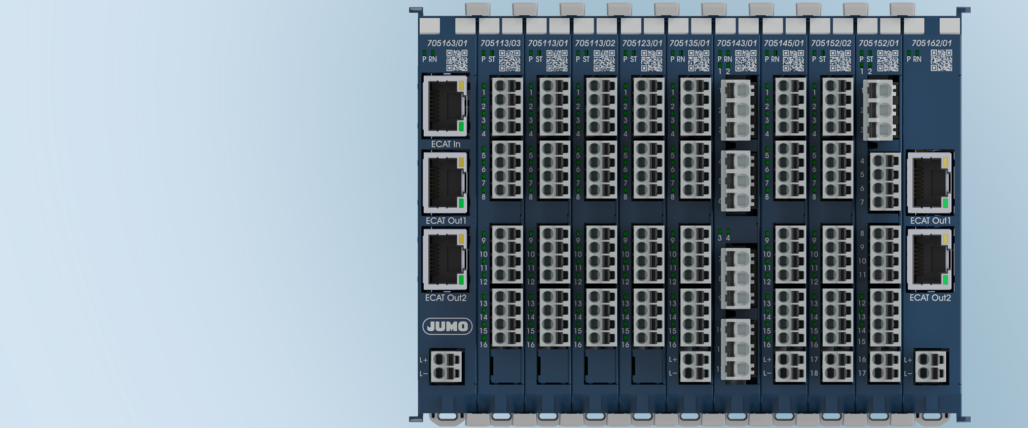 Modulare I/O-Systeme sind besonders flexibel. Sie lassen sich exakt an den Bedarf anpassen und können jederzeit erweitert werden. Im Wartungsfall ist es möglich, einzelne Module schnell zu tauschen, ohne das gesamte System stillzulegen. Dadurch sinken Stillstandzeiten und die Wartungskosten. Das macht modulare Systeme sowohl für kleine Maschinen als auch für komplexe Anlagen attraktiv. Auch das JUMO I/O-System ist modular aufgebaut und lässt sich beliebig erweitern, sodass Anwender von einer sehr hohen Flexibilität und Skalierbarkeit profitieren.