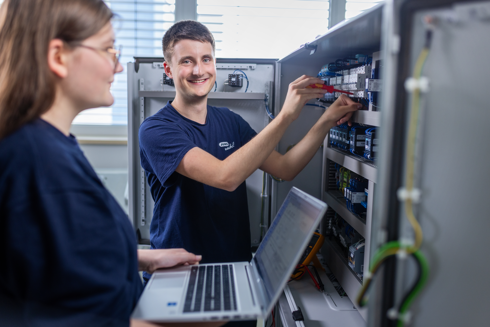 You are interested in technology and want to understand complex understand complex interrelationships? You enjoy varied challenges and would like to learn how to program and configure controls? You would also like to become an expert in power supply? Are you fascinated by large switchgear and control systems as well as the independent installation of equipment in systems according to design drawings and circuit diagrams? Then an apprenticeship as an electronics technician (m/f/d) - operating technology might appeal to you.
