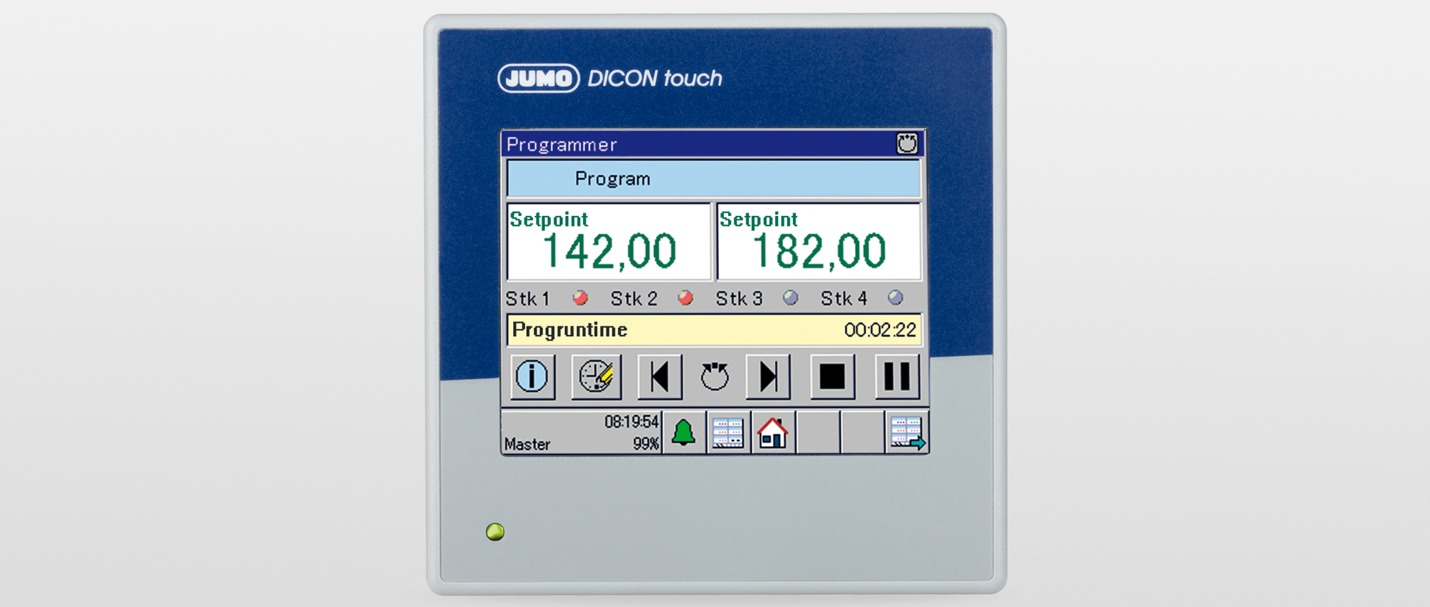 Some processes require more than 1 control channel. The two-channel controllers from JUMO allow you to control 2 measurands with 1 device. This saves money and space in the control cabinet. Control temperature and other measurands with reliable JUMO controllers. These offer many practical functions and can be used with flexibility.