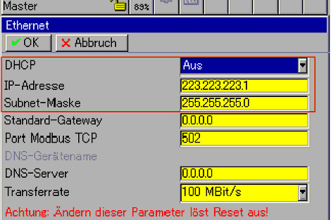 • After the power is turned off and on again, the JUMO LOGOSCREEN nt automatically receives a free IP address from the assigned range.