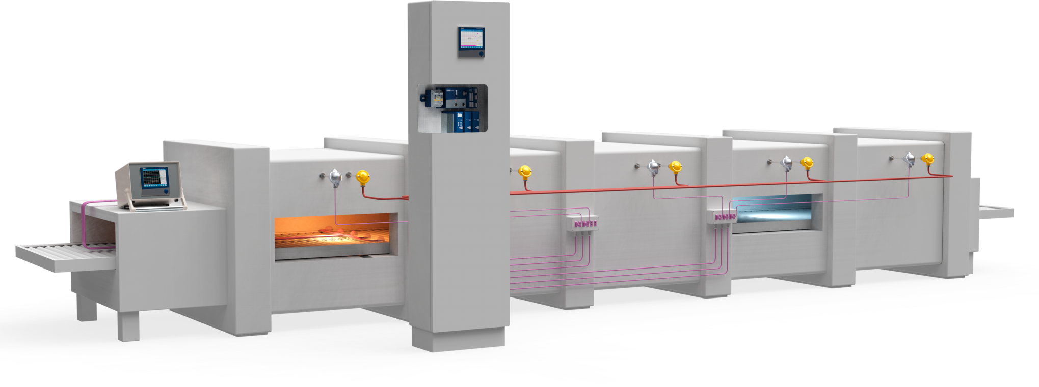 Il trattamento termico continuo è utilizzato in molte aree industriali diverse. Non si tratta solo di ottenere un processo di produzione veloce in cui i prodotti si fanno strada attraverso l'impianto in modo automatizzato. I sistemi di trattamento termico continuo possono anche mappare zone con diversi intervalli di temperatura attraverso cui passano i prodotti. In questo modo, i prodotti possono, per esempio, essere riscaldati, raffreddati, essiccati e cotti in successione immediata.
