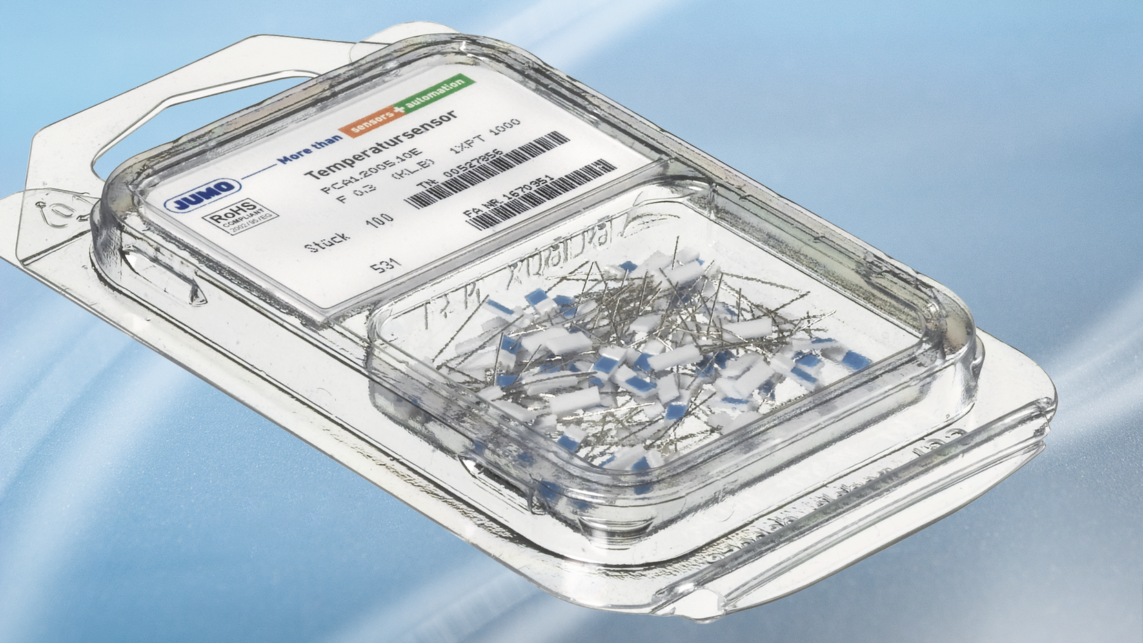 Bedrahtete Platin-Chip-Temperatursensoren von JUMO stehen für verschiedene Einsatztemperaturen zur Verfügung. Für den mittleren Temperaturbereich bis 550 °C gibt es Standardvarianten mit Platin-Manteldraht (Bauform PCW-M-PtNi), die mit vielen gängigen Verbindungstechniken weiterverarbeitet werden können. Für den Temperaturbereich bis 500 °C bieten wir Ihnen eine wirtschaftliche Alternative mit Anschlussdrähten aus vergoldetem Nickeldraht (Bauform PCW-M-AuNi), die zudem lötbar sind. Für anspruchsvolle Anwendungen mit Einsatztemperaturen bis 600 °C ist die Bauform PCW-H-Pd erhältlich.