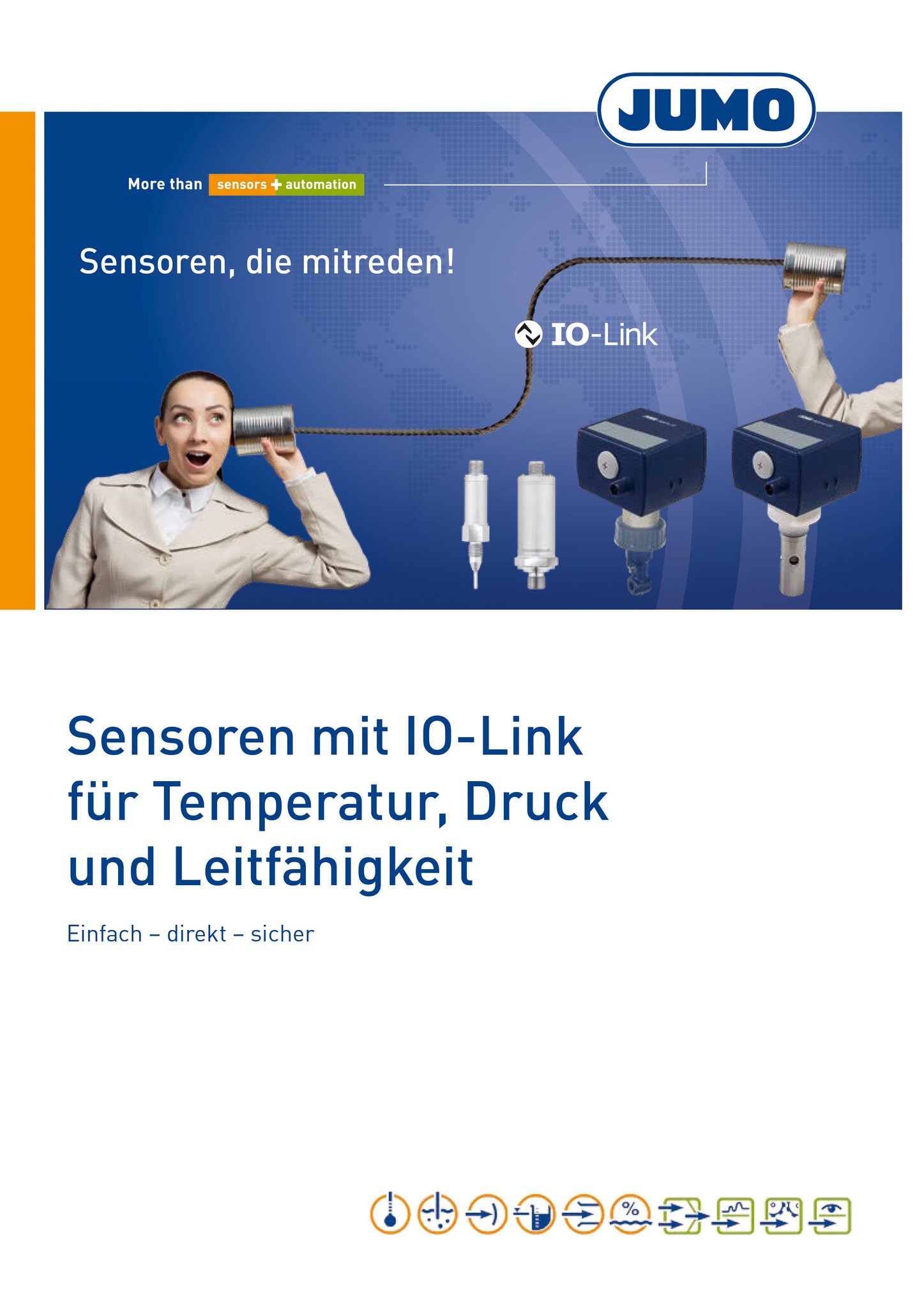 JUMOs temperatur-, trykk- og konduktivitetssensorer sammen med IO-Link hjelper deg med å planlegge tilgjengeligheten eller utskiftingen av sensorer bedre ved hjelp av den integrerte diagnosefunksjonen. I tillegg elimineres tidkrevende parameterinnstillinger ved bytte av sensorer fordi nødvendige data overføres fra det totale systemet.