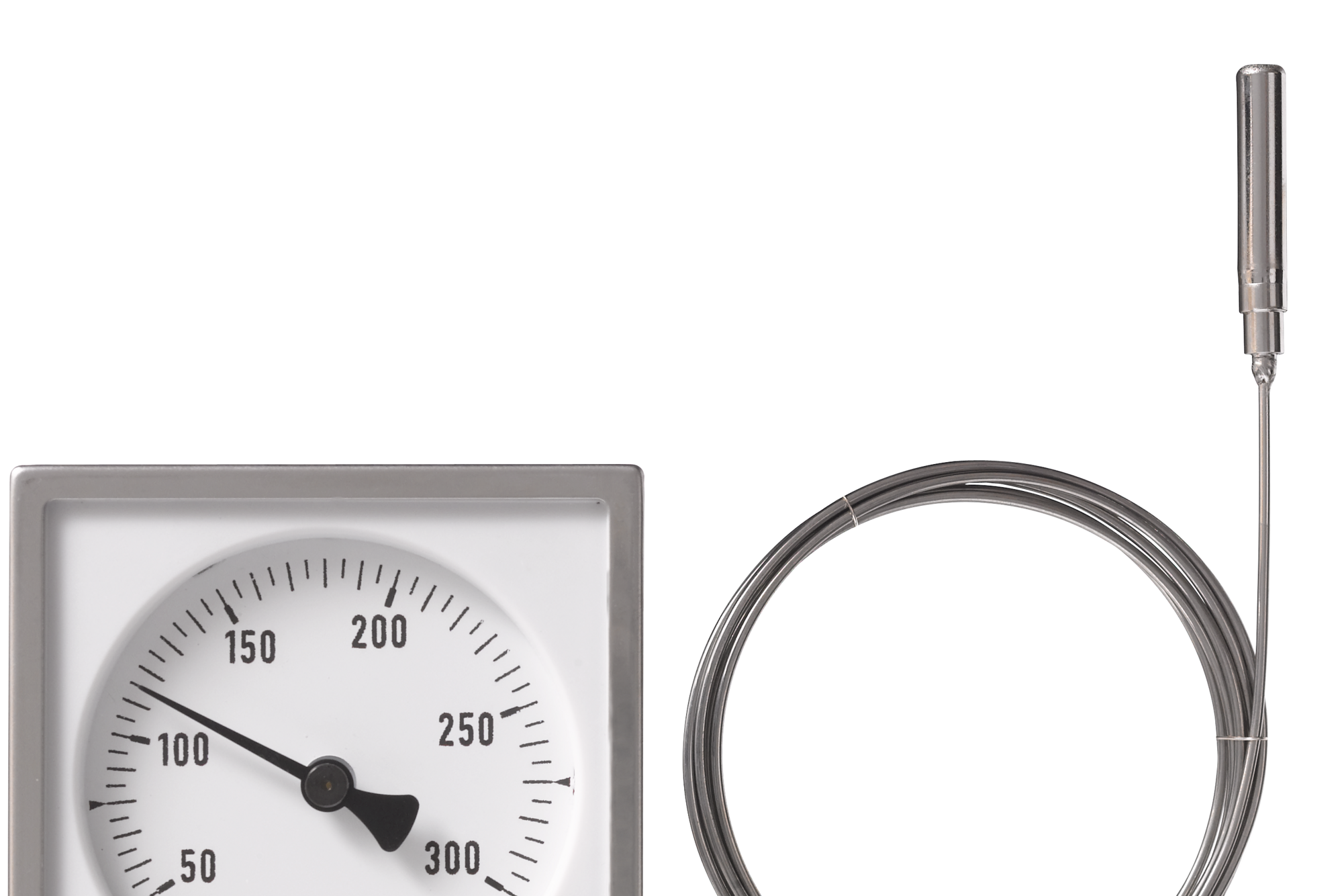 With a dial thermometer with a capillary, it is possible to measure temperatures in inaccessible points. Even the smallest pipes can be reached by means of the contact bulb. Another advantage is the bridging of larger distances, so that this type of thermometer can be centrally integrated into a control cabinet, switchboard or control panel.