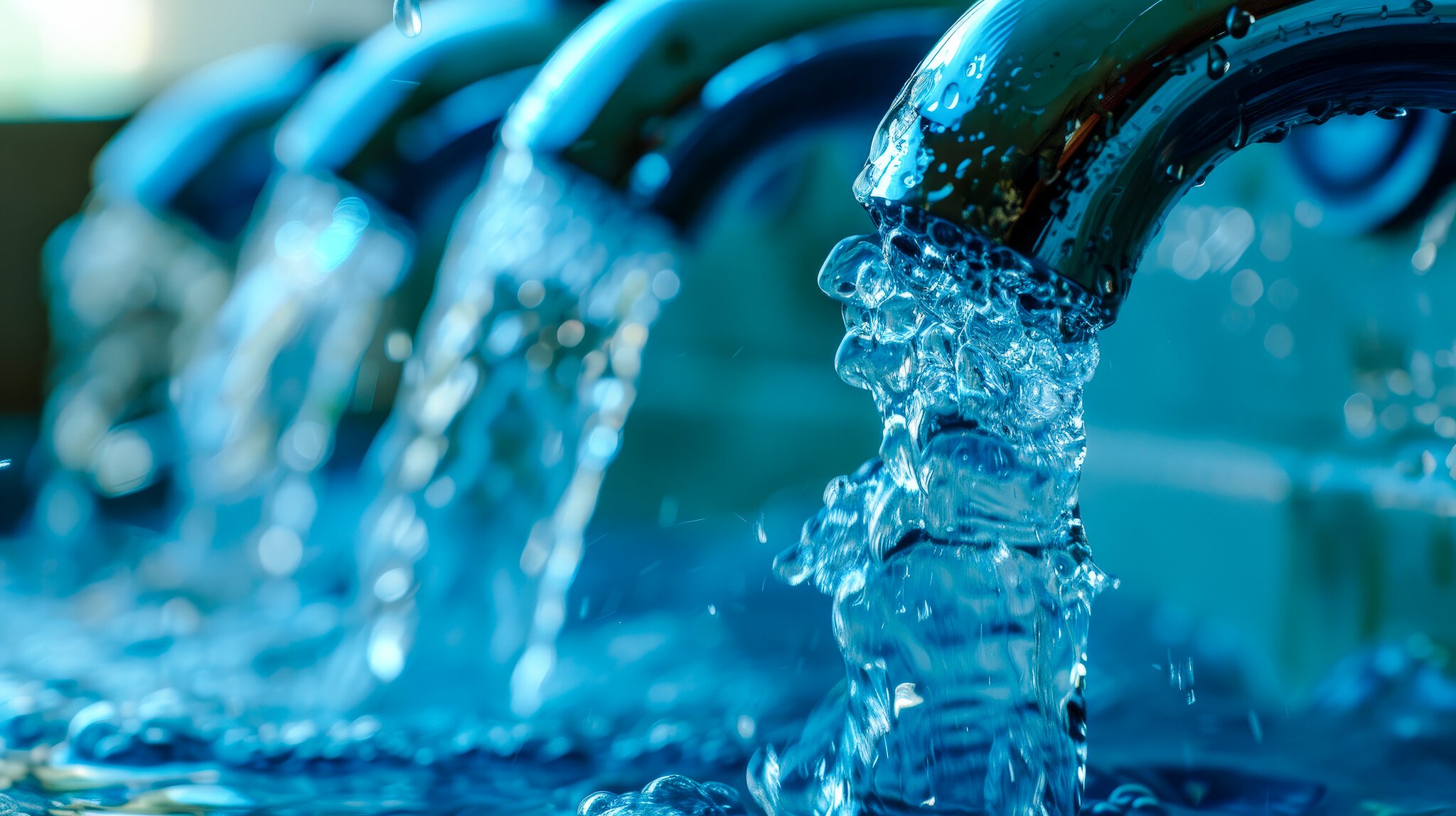 Water flows from 4 faucets