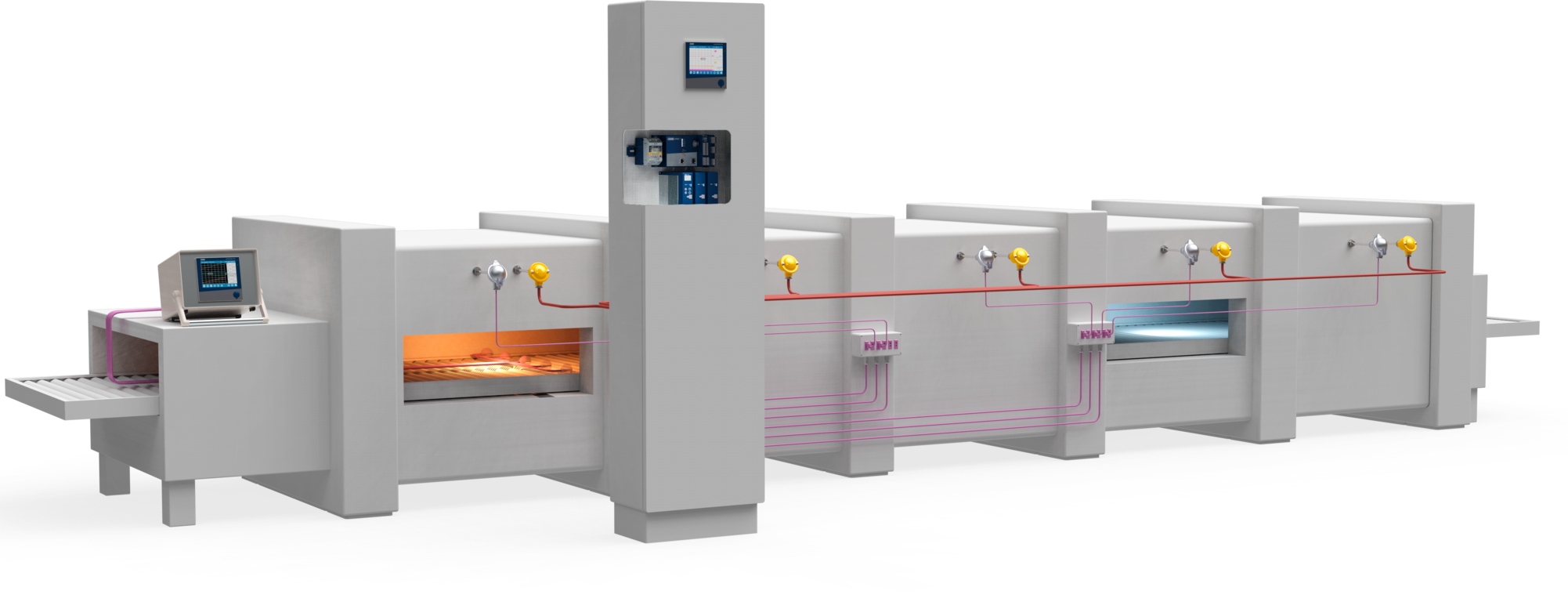 Continuous heat treatment is used in many different industrial areas. It is not just about achieving a fast manufacturing process in which the products make their way through the plant in an automated fashion. Continuous heat treatment systems can also map zones with different temperature ranges through which the products pass. This way, products can, for example, be heated, cooled, dried, and fired in immediate succession.