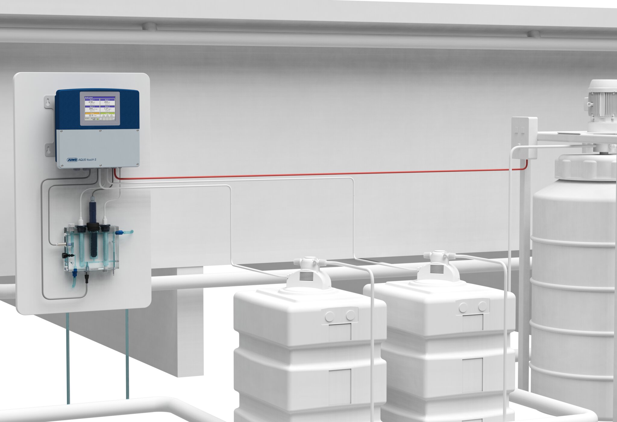 Chlorination is the most commonly used method for water disinfection. This treatment serves primarily to kill or reduce the microorganisms within the water (bacteria, viruses, etc.). This process can also be called sterilization. Liquid analysis technology from JUMO is used for the right amount of chlorine.