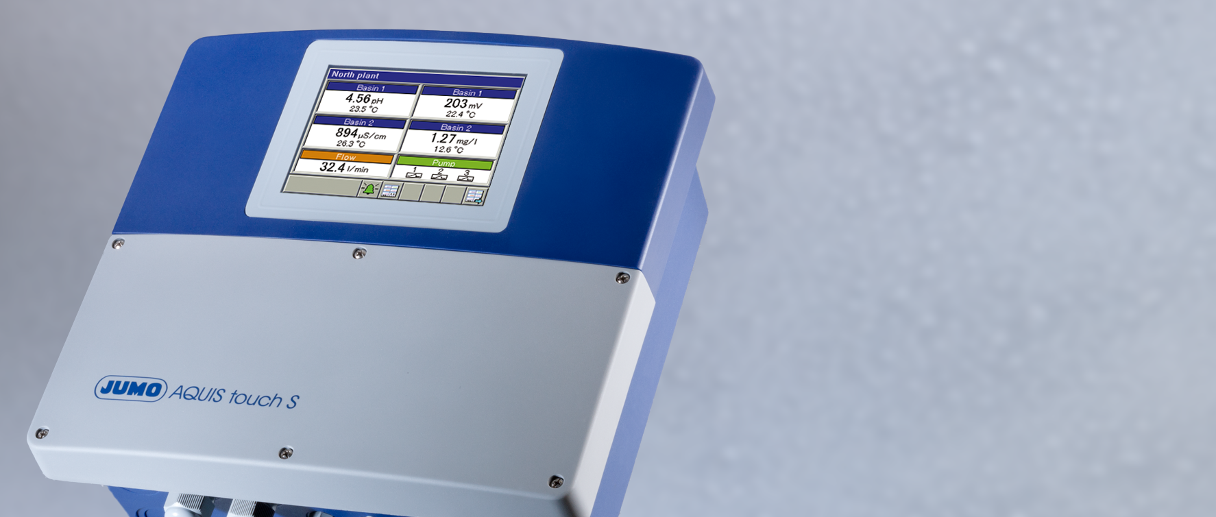 JUMO transmitters and controllers enable you to measure and control the most varied of electrochemical measurands in liquids. Reliably control conductivity, redox potential, and pH value as well as the concentration of ammonia, bromine, chlorine, chlorine dioxide, dissolved oxygen, caustic soda, hydrogen peroxide, ozone, peracetic acid, and nitric acid.