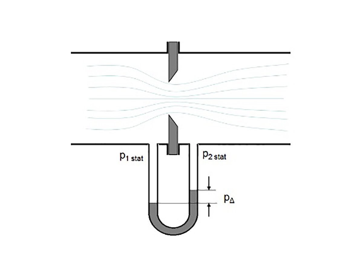 A differential pressure sensor has two process connections. The pressures act in opposite directions on the membrane. The measurement result is always the difference between the two pressures p2 – p1 = Δp.