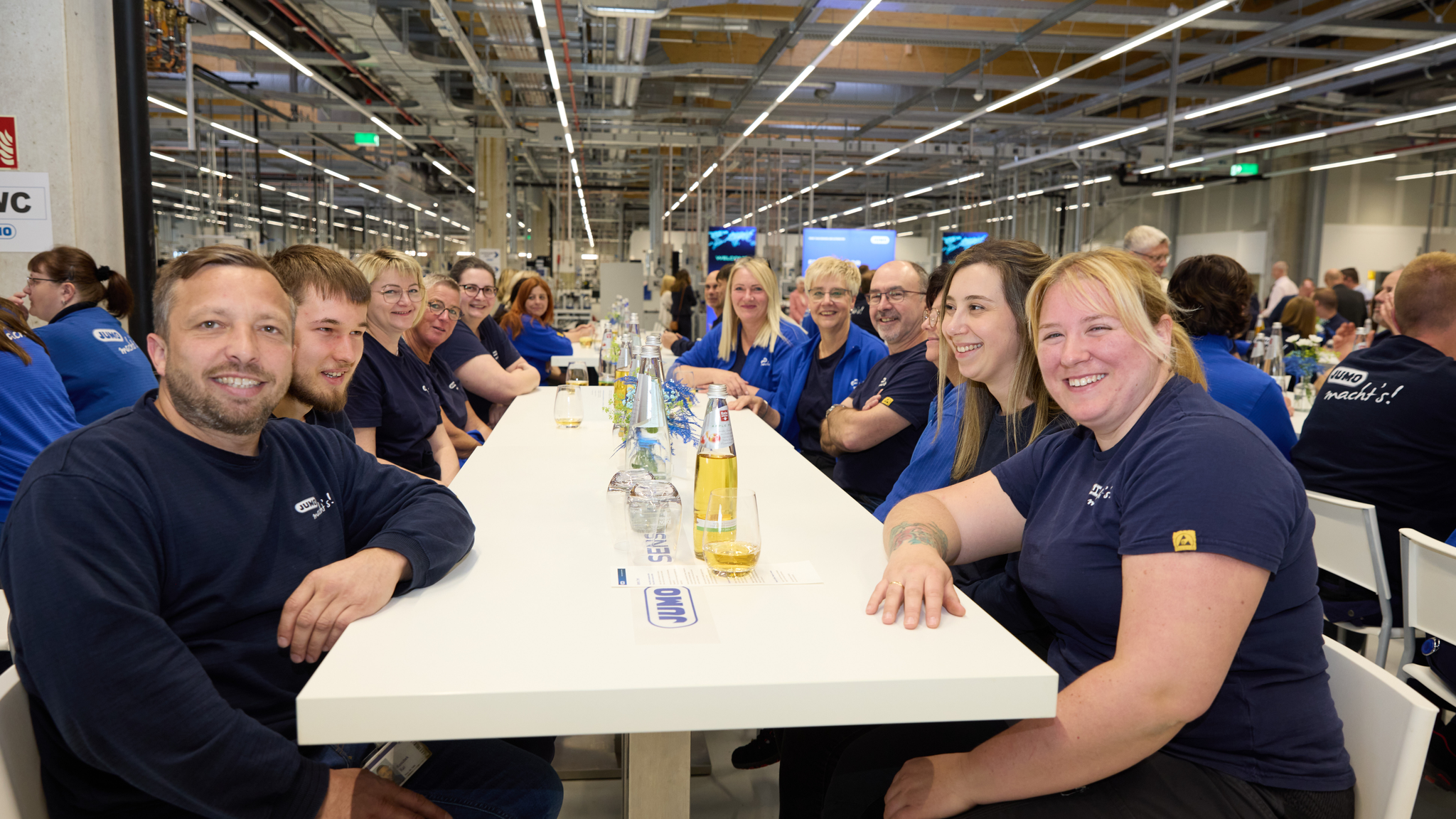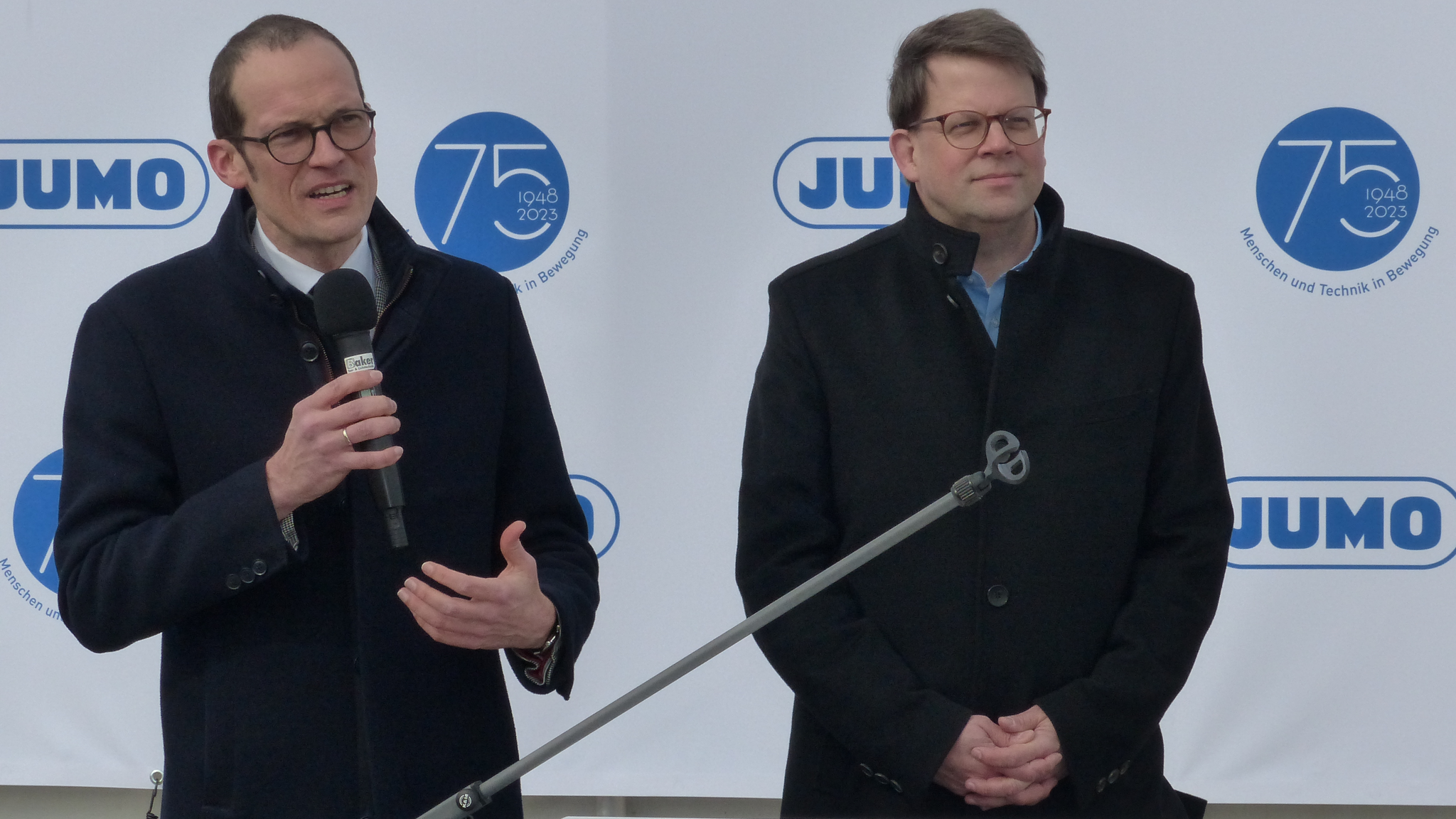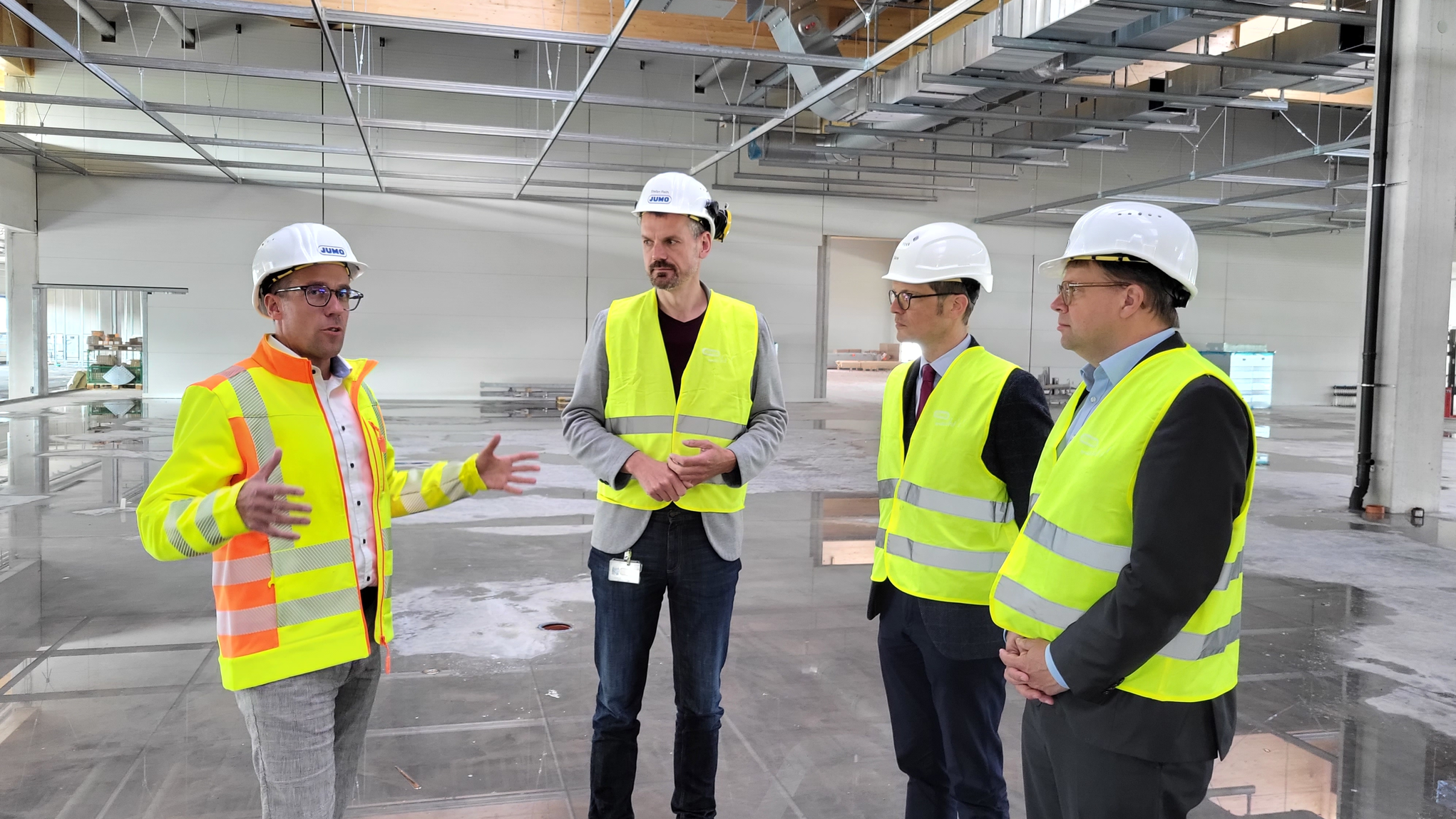 "<table class=\"table jumo-table table-striped\" data-lexical-row-striping=\"true\" dir=\"ltr\"><colgroup><col><col></colgroup><tbody><tr dir=\"ltr\"><th colspan=\"2\" dir=\"ltr\" ><p class=\"\" dir=\"ltr\"><span >Byggplatsdagbok</span></p></th></tr><tr dir=\"ltr\"><td ><p class=\"\"><span >4/2023</span></p></td><td dir=\"ltr\" ><p class=\"\" dir=\"ltr\"><span >Första spadtaget</span></p></td></tr><tr dir=\"ltr\"><td ><p class=\"\"><span >6/2023</span></p></td><td dir=\"ltr\" ><p class=\"\" dir=\"ltr\"><span >Färdigställande av betongväggarna (byggnadsfas 1), färdigställande av bottenplattan (BA2), färdigställande av markarbeten och markförbättring (BA3), införande av betongpålar i marken, betonggjutning av väggarna i sprinklertanken</span></p></td></tr><tr dir=\"ltr\"><td ><p class=\"\"><span >7/2023</span></p></td><td dir=\"ltr\" ><p class=\"\" dir=\"ltr\"><span >Läggning av källartak (BA1), uppförande av väggar (BA2), färdigställande av golvplatta (BA3), färdigställande av markarbeten (parkeringsplats)</span></p></td></tr><tr dir=\"ltr\"><td ><p class=\"\"><span >10/2023</span></p></td><td dir=\"ltr\" ><p class=\"\" dir=\"ltr\"><span >Start av fasadarbeten, start av montering av träkonstruktion, start av installation av byggnadsteknik i källaren</span></p></td></tr><tr dir=\"ltr\"><td ><p class=\"\"><span >11/2023</span></p></td><td dir=\"ltr\" ><p class=\"\" dir=\"ltr\"><span >Början av trapezplåt, början av taktäta, taklagsfest</span></p></td></tr><tr dir=\"ltr\"><td ><p class=\"\"><span >12/2023</span></p></td><td dir=\"ltr\" ><p class=\"\" dir=\"ltr\"><span >Start av installation av sprinklerledning, färdigställande av träkonstruktion</span></p></td></tr><tr dir=\"ltr\"><td ><p class=\"\"><span >01/2024</span></p></td><td dir=\"ltr\" ><p class=\"\" dir=\"ltr\"><span >Färdigställande av trapetsformad plåt</span></p></td></tr><tr dir=\"ltr\"><td dir=\"ltr\" ><p class=\"\" dir=\"ltr\"><span >Stand 09/2024</span></p></td><td dir=\"ltr\" ><p class=\"\" dir=\"ltr\"><span >Installation av fönster, persienner, belysning, nödbelysning och luftfuktning, fullständig och partiell installation av golv, gipsväggar, ventilationsteknik och elinstallation, borrning av geotermiska sensorfält, driftsättning av nätverksanslutningen till fabriken 1 via glasfiber, montering av det automatiska lagret och utrustning med behållare.</span></p></td></tr><tr dir=\"ltr\"><td dir=\"ltr\" ><p class=\"\" dir=\"ltr\"><span >Stand 01/2025</span></p></td><td dir=\"ltr\" ><p class=\"\" dir=\"ltr\"><span >Färdigställande av energiförsörjningsnätet i hallen, montering av medieanslutningsplattor för driftsutrustningen, installation av ESD-golvbeläggning, fininstallation av teknisk byggnadsutrustning, godkännande av brandlarmsystem, färdigställande av värmeöverföringssystemet för sprinklertanken, installation av gipsväggar, målnings- och kakelarbeten (inredning), installation av innerdörrar och ytterportar, färdigställande av parkeringsplats med grönska, modellering av utomhusanläggningar, installation av kioskutrustning, installation av första driftsutrustningen och produktionsstart</span></p></td></tr><tr dir=\"ltr\"><td dir=\"ltr\" ><p class=\"\" dir=\"ltr\"><span >02 till 05/2025</span></p></td><td dir=\"ltr\" ><p class=\"\" dir=\"ltr\"><span >Installation av golvbeläggning, färdig installation av sanitära anläggningar, fininstallation av maskinanslutningar, start av driftsättning av byggnadsautomation, start av driftsättning av automatiskt lager, början av inflyttning i produktions- och logistikutrymmen, utrustning av kiosk, installation av dörrar, driftsättning av betongkärnaktivering, beläggningsarbeten utomhus, fyllning av sprinklertank, driftsättning av brandlarmsanläggning, driftsättning av videoövervakning av ytterhölje och viktig infrastruktur</span></p></td></tr><tr dir=\"ltr\"><td dir=\"ltr\" ><p class=\"\" dir=\"ltr\"><span >22. Maj 2025</span></p></td><td dir=\"ltr\" ><p class=\"\" dir=\"ltr\"><span >Officiell invigning</span></p></td></tr></tbody></table>"