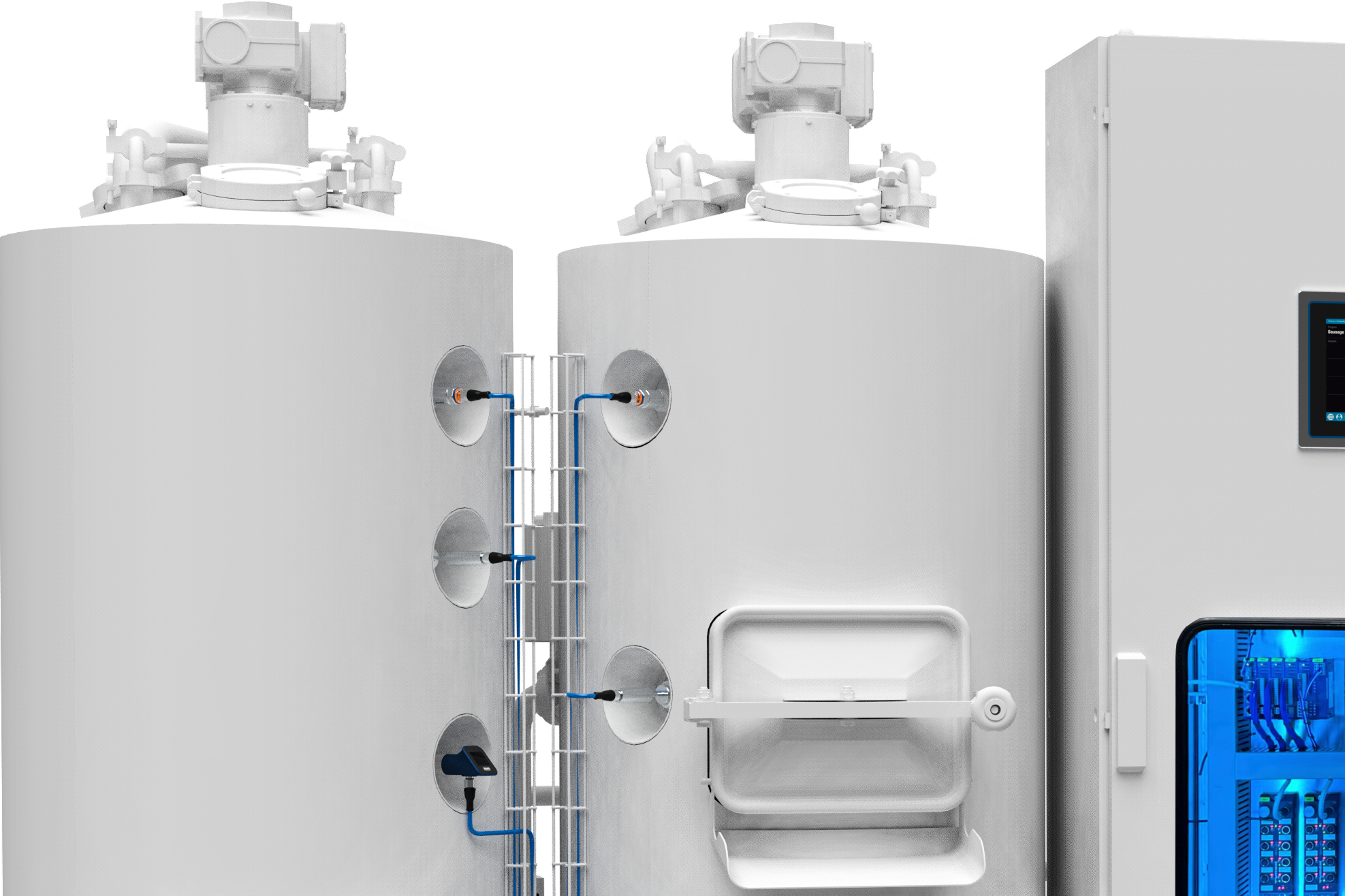 De tillämpade sensorerna installerades i anläggningen med processanslutningarna G ½ (hygienisk), JUMO PEKA (EHEDG-certifierad) och clamp. Därefter integrerades de via Single Pair Ethernet (SPE), IO-Link eller via en 4 till 20 mA-signal.