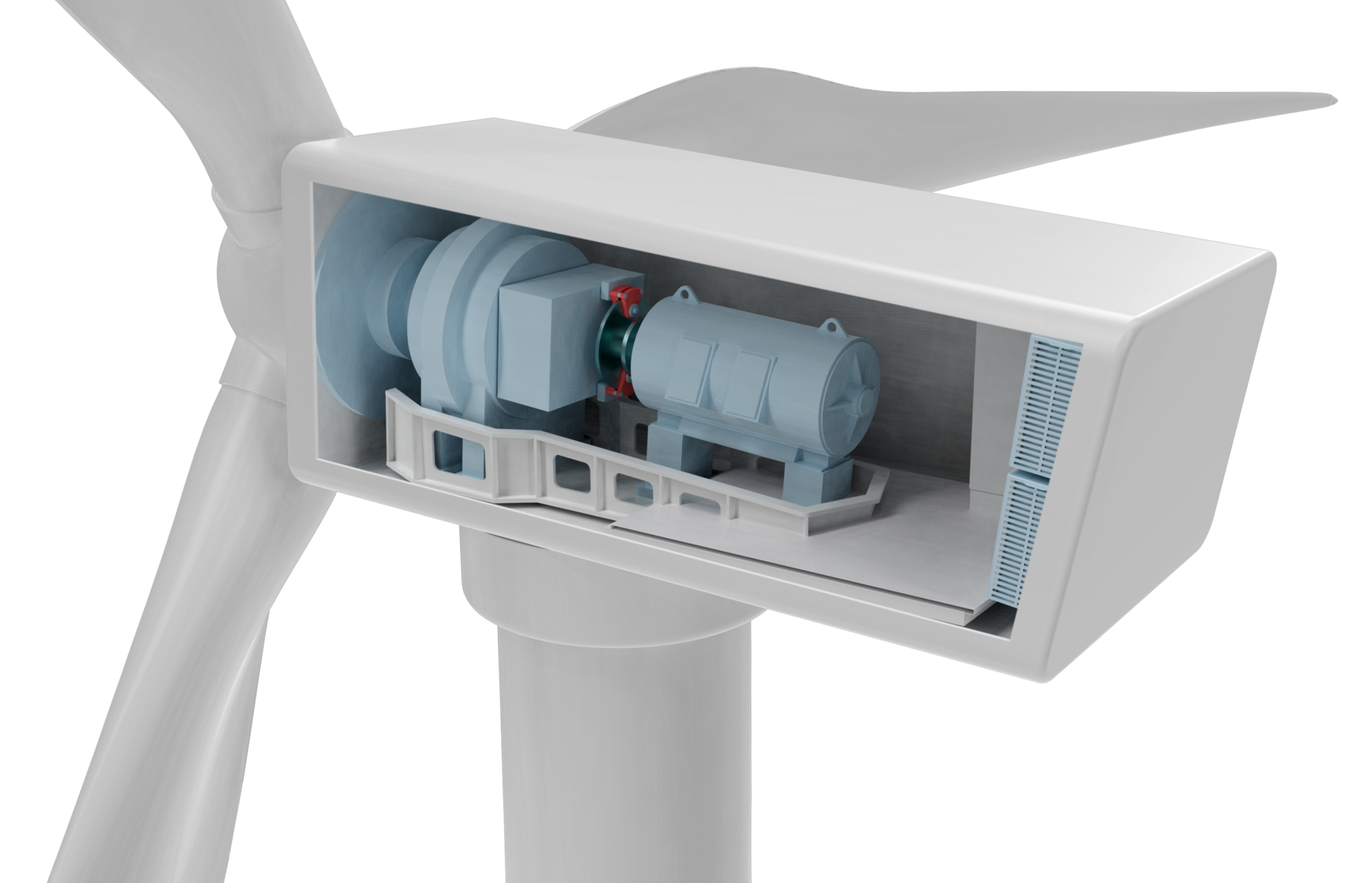 Gondeln i ett vindkraftverk är turbinens hjärta. Den innehåller nyckelkomponenter som generator, växellåda och styrsystem. För att öka driftseffektiviteten används allt oftare automatiseringslösningar för att styra nacellens inriktning och den dynamiska justeringen av rotorbladets vinkel efter rådande vindförhållanden. IIoT-sensorer förser styrsystemen med relevanta data om anläggningens status och väderförhållanden. Perfekt samverkan mellan sensorteknik, automatisering, prediktion och utvärdering är därför avgörande för effektiv vindkraftsproduktion. Det spelar också en viktig roll för förebyggande underhåll. Läs mer om våra system och lösningar för vindturbinernas gondoler!