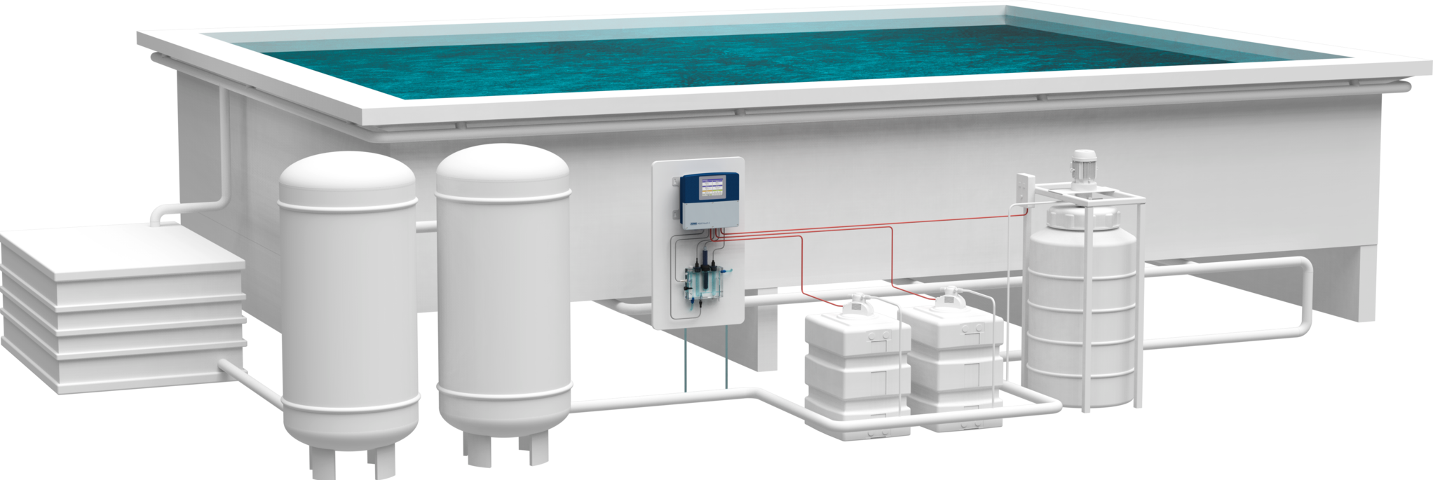 Yüzme, popüler ve sağlıklı bir boş zaman etkinliğidir. Ancak algler, diğer maddeler ve ayrıca zararlı mikroplar, virüsler ve bakteriler, özellikle havuz birçok kişi tarafından kullanılıyorsa, suda hızla toplanabilir. Havuzda geçirilen sürenin keyifli olması için su kalitesi sürekli kontrol edilmelidir. Bu nedenle tüm yüzme havuzları sürekli olarak izlenir ve kontrol edilir. JUMO sizi bu konuda destekler ve yüzme havuzu uygulamalarınız için doğru çözümlere sahiptir.