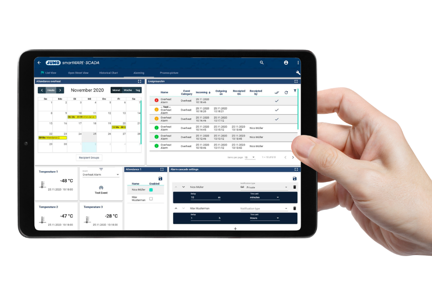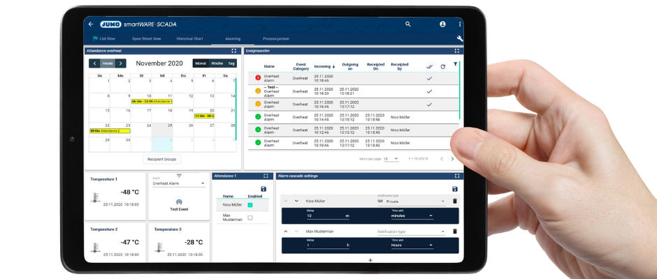 Responding to the customer's needs, we implemented a solution based on the JUMO automation system, which enables unattended collection of measurement data and its analysis in real time. A key element was the integration of the JUMO variTRON 500 controller, which acts as a central unit and collects data from equipment distributed in different parts of the plant. With its open communication capabilities, the variTRON was connected to the existing infrastructure and enabled data transfer via Ethernet - eliminating the need for USB altogether.