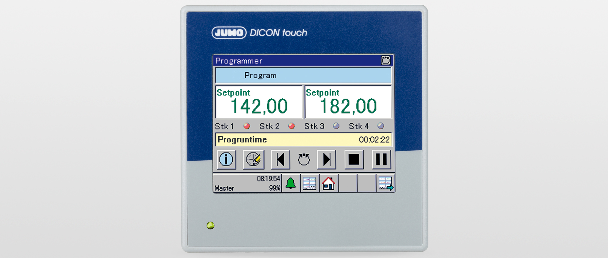 The controller must be equipped with a serial interface so that it can be controlled centrally by a PLC. You can integrate JUMO controllers into your systems via the RS232/485 interface and protocols such as Modbus TCP or Modbus RTU. Some controllers can also control other systems as Modbus master.