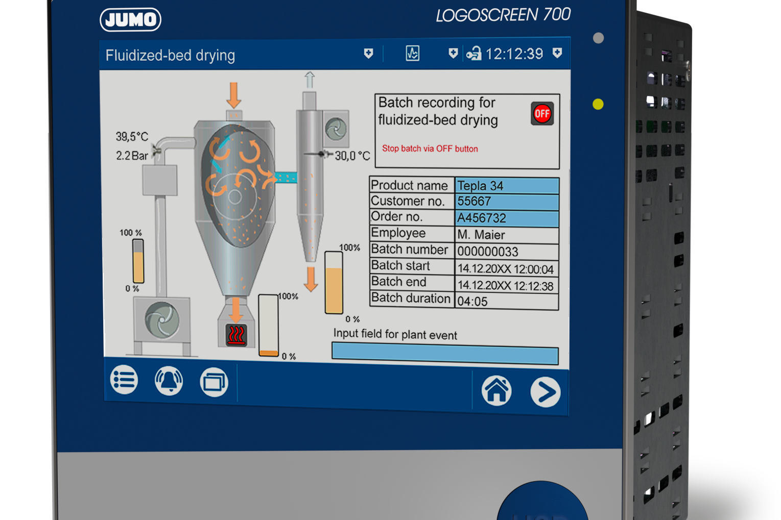 Окрім контрольних функцій, LOGOSCREEN 700 реєструє важливі дані GPS, події та сигнали тривоги. Пристрій також вимірює кількість очищеної трюмної води, що скидається за борт, та вміст масла, відображаючи ці значення як у кубічних метрах, так і в літрах. Дані про процеси можуть бути візуалізовані безпосередньо на пристрої або через веб-сервер, який можна налаштувати відповідно до індивідуальних потреб користувача.