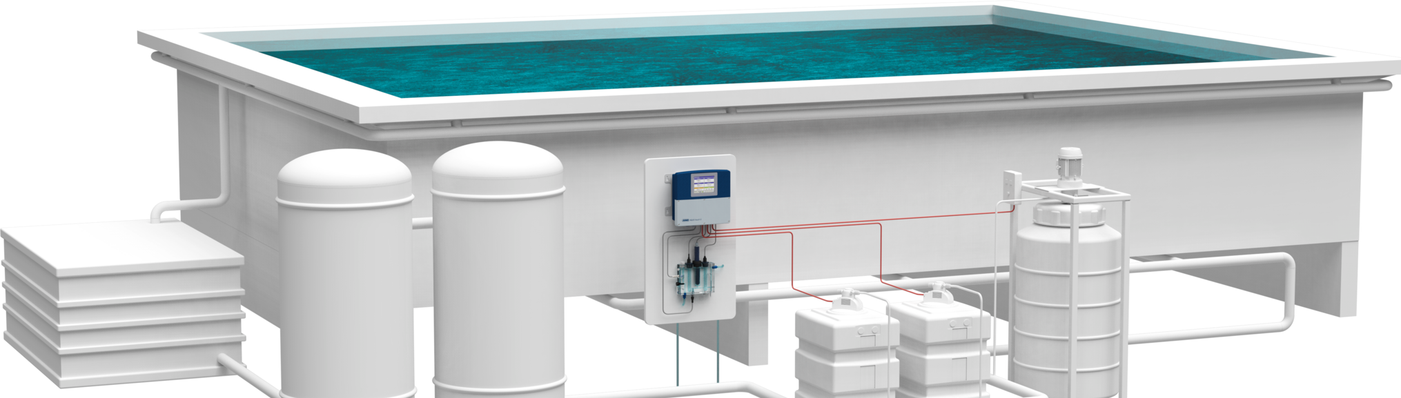 Плавання - популярний і корисний для здоров'я вид дозвілля. Однак водорості та інші речовини, такі як небезпечні мікроорганізми, віруси та бактерії, можуть швидко накопичуватися у воді - особливо, коли нею користується багато людей. Для того, щоб ми могли насолоджуватися безпечним і приємним плаванням, якість води в басейнах повинна постійно контролюватися. JUMO підтримує вас у цьому процесі і має правильне рішення майже для кожного басейну в своєму асортименті. Натисніть на процес, для якого вам потрібна вимірювальна техніка. На основі вашого вибору буде відображено відповідний асортимент продукції JUMO.