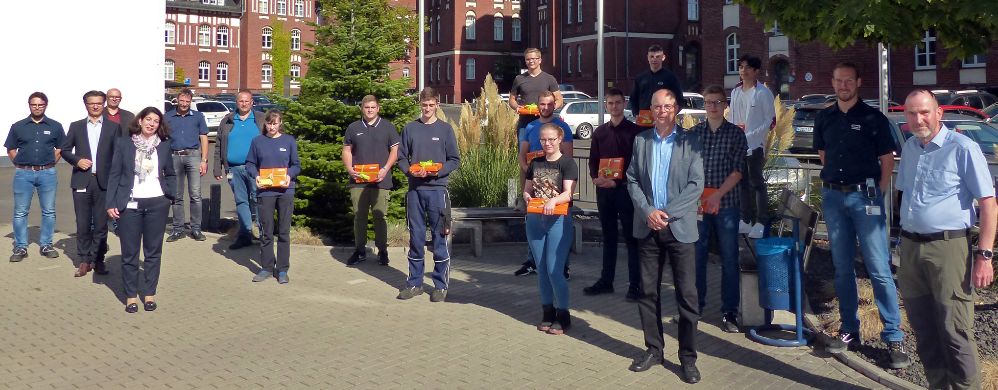 The 21 trainees who successfully passed their exams are Laura Gefner, Simon Hähner, Lukas Roth, Marek Staudt (each an industrial electrician), Lukas Bergmann (specialist for metal technology), Jonas Fast, Jannik von Keitz (each an industrial mechanic), Kevin Scherf, Jonathan Weber, Pascal Winheim (each an electronic technician for devices and systems) Kira Morshäuser (glass apparatus maker), Michelle Schwerdt (technical product designer), Hannah Elm, Inken Kasper, Jakob Lorenz, Charlotte Müller, Laura Hildebrand, Torben Müller, Anne Szymiczek, Julian Tschöpe (each industrial clerk) and Moritz Schneider (IT specialist)