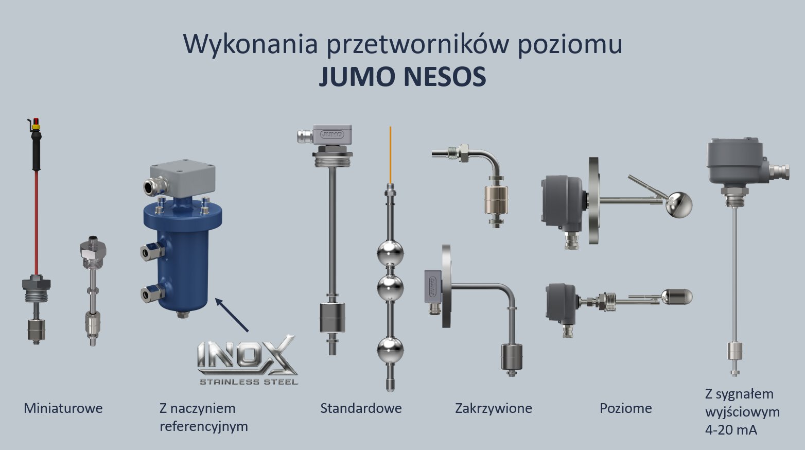 The JUMO NESOS series level transmitters are designed for continuous, precise measurement of liquid levels in various applications, including closed tanks. They operate on a float principle, based on Archimedes' law, where the float moves along a guide as the liquid level changes. Floats of various shapes are available, made of stainless steel or titanium.
